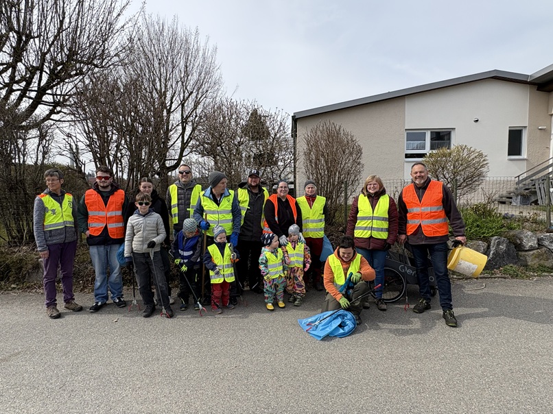 Im Rahmen der Aktion „Horgenzell räumt auf“ haben sich am Samstag, den 28.03.2026 in Zogenweiler 10 Erwachsene und 7 Kinder auf den Weg gemacht unachtsam weggeworfen Müll einzusammeln. Ausgestattet mit Eimern, Handschuhen und Warnwesten zogen wir in kleinen Gruppen durchs Dorf und entlang der angrenzenden Wege und Straßen. Es ist erschreckend, wieviel Müll einfach in die Landschaft geschmissen wird. Nach der Aktion gingen wir gemeinsam zum „Viere Treff“, der diesmal von der Krabbelgruppe Zogenweiler bewirtet wurde.